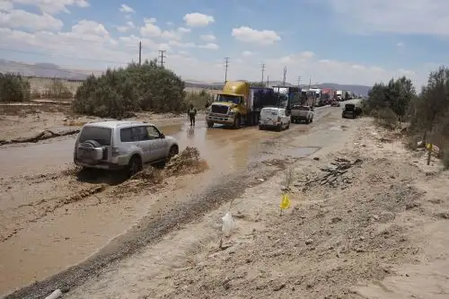 El tránsito vehicular en el kilómetro 337 de la carretera Panamericana Sur, a la altura del distrito Ocucaje, en la provincia y región Ica, permanece bloqueado hoy jueves 19 de febrero. Cientos de vehículos se encuentran varados tras la caída de huaicos a causa de las lluvias intensas que se registran en las zonas altas de Ica.