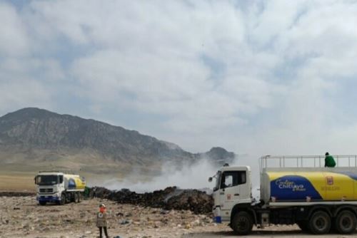 Con relación a las labores de contención y control del incendio, la Municipalidad Provincial de Chiclayo dispuso dos camiones cisterna con agua y viene coordinando con diversas instituciones para efectuar los trabajos del traslado del material de cobertura. Pese a los esfuerzos realizados, no se ha podido apagar el fuego y continúa emanando humo.