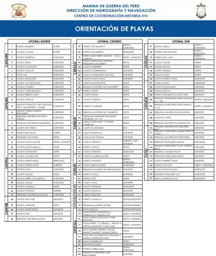 La Dirección de Hidrografía y Navegación de la Marina de Guerra del Perú es la Institución responsable y encargada del monitoreo y alerta permanente de la aproximación de oleajes anómalos en zonas costeras y oceánicas.