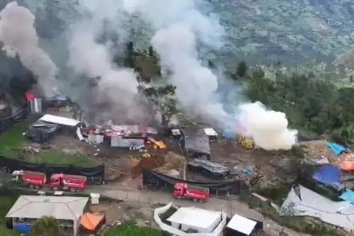 Agentes de la División contra la Minería Ilegal intervinieron un complejo sistema minero clandestino que operaba en la zona altoandina e incautaron más de 6,000 toneladas de mineral polimetálico compuesto por rocas con alto contenido de oro, plata, cobre y otros metales valiosos, extraídos sin autorización y comercializados en el mercado negro nacional e internacional.