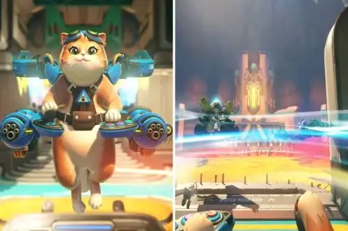 - Jetpack Cat (Apoyo): Un héroe support con vuelo permanente que utiliza su jetpack y ataques bióticos para sanar aliados o dañar enemigos, con habilidades como Frenetic Flight, Lifeline y su ulti Catnapper que puede cambiar el rumbo de una pelea. Su llegada fue tan esperada que incluso la actriz legendaria Jennifer Hale fue anunciada como su voz, lo que le da un toque especial y humorístico a este personaje felino.