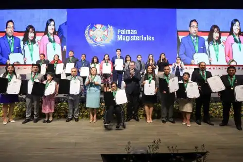 Al entregar las Palmas Magisteriales a 17 destacados docentes, el ministro de Educación, Morgan Quero, reafirmó el compromiso del Gobierno para seguir trabajando por una educación que valore a sus maestros, los apoye y reconozca como un pilar fundamental de la nación.