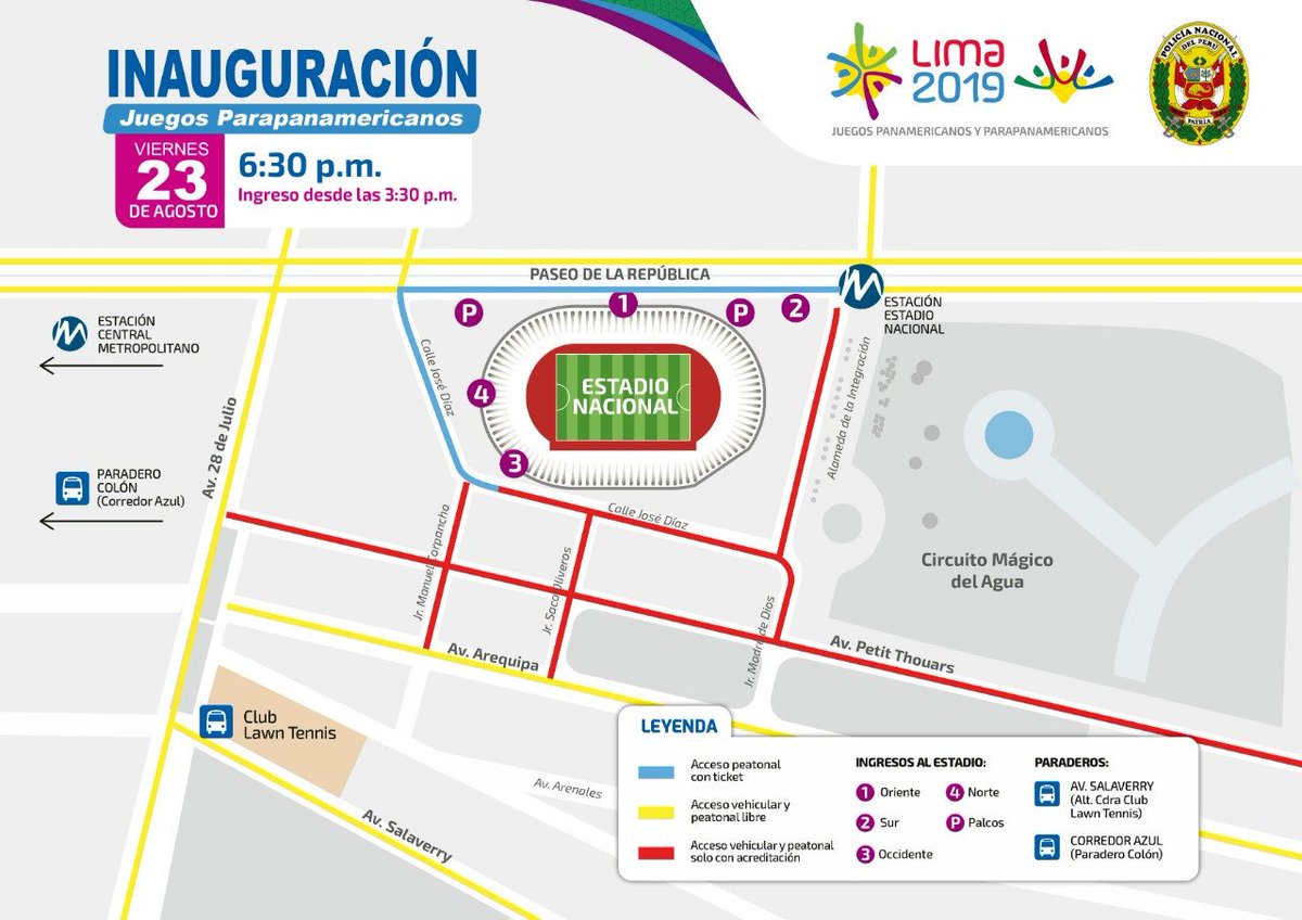 • Tener en cuenta que la Av. Petit Thouars y las vías transversales al Estadio Nacional estarán cerradas.