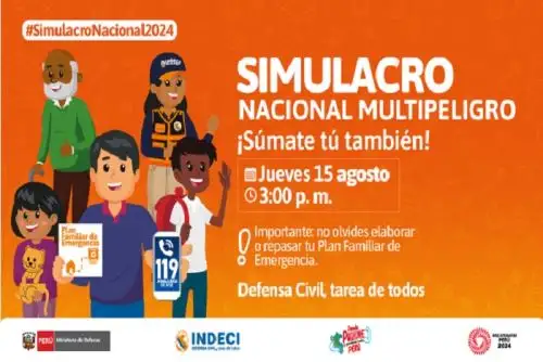 El Instituto Nacional de Defensa Civil (Indeci) exhorta a la ciudadanía a participar activamente en el segundo Simulacro Nacional Multipeligro del año, que se llevará a cabo el jueves 15 de agosto de 2024. Este ejercicio conmemora los 17 años del devastador sismo de 7.9 Mw (magnitud de momento) con epicentro en Pisco, el cual afectó a 431,313 personas y destruyó 91,240 viviendas.