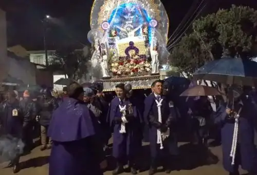 Bajo una intensa lluvia y la caída de relámpagos se realizó el último recorrido procesional del Señor de los Milagros en la ciudad de Cerro de Pasco, la más alta del mundo al estar a una altitud de 4,330 metros sobre el nivel del mar.