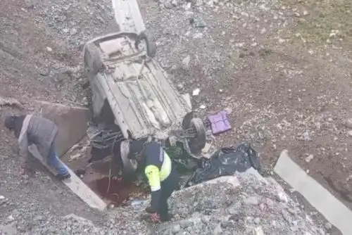 Según el reporte del fatal accidente que se produjo cerca de las 8 de la mañana en el cruce Yantac y la Laguna 7 Colores, tras el fuerte impacto, el vehículo menor, marca Hyundai, con placa CJY-255, rebotó y se salió de la vía, cayendo en una cuneta con las llantas arriba y murieron sus ocupantes.