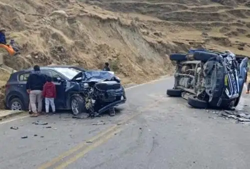 Cuatro personas resultaron heridas tras el choque frontal de dos vehículos en la Carretera Central, en la zona de Chipipata de la carretera Yanahuanca-Pasco.