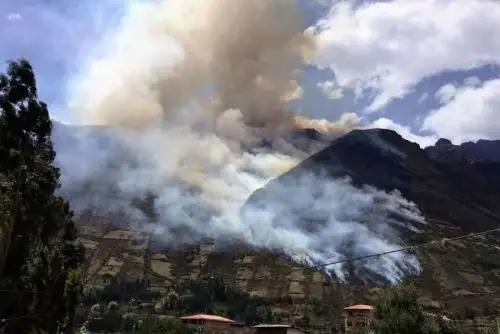 Varias hectáreas de cultivo resultaron destruidas por un incendio forestal en el centro poblado de Chango, distrito de Chacayán, provincia de Daniel Alcides Carrión, departamento de Pasco.