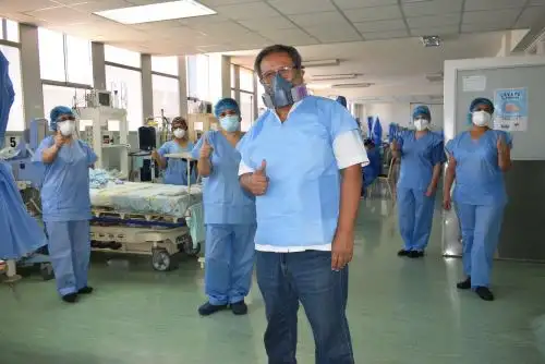 “Hasta ahora seguimos en pie trabajando en la UCI Pediátrica todos los médicos y el personal de enfermería, técnico”, subraya el pediatra intensivista. En su día a día, usa doble mascarilla, una careta, chaqueta, y cumple con el lavado de manos y el distanciamiento con los familiares de los pacientes.