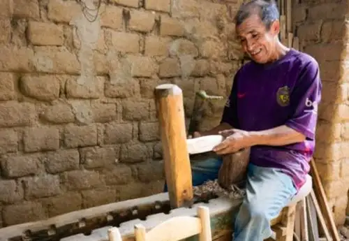 Mientras pule unas estructuras de madera, que luego forrará con pajilla que consigue en la zona alta de su tierra natal, cuenta que sus primeras clases las recibió de su padre, Juan Salinas, pero terminó de conocer su profesión gracias a su abuelo, don Gabriel.
