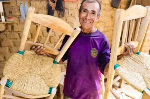 Don Américo recuerda que su primera pieza fue una silla de zapatero, que armó junto a su padre, Juan Salinas, quien actualmente tiene 93 años y también es usuario del programa Pensión 65. Cuenta además que tuvo un emprendimiento con su hermano, pero lamentablemente falleció hace cuatro años, dejándole un motivo más para seguir adelante.