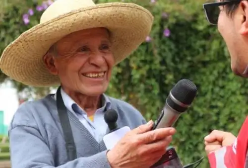 Con un equipo celular que hace poco tiempo adquirió para continuar sus sueños de informar y compartir las historias más bellas de su natal Huariaca, ubicado en el departamento de Pasco, un micrófono portátil y una cordial sonrisa, que le abre las puertas en cualquier situación, Benancio Aguilar Chamorro, de 69 años, se ha convertido en el reportero más longevo de su localidad, retratando la realidad de sus calles y compartiendo las bondades de su región.