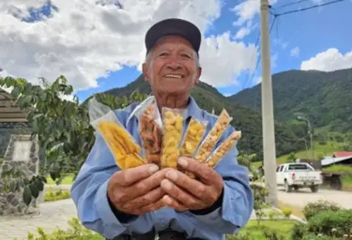 Para lograr con su objetivo, decidió impulsar un emprendimiento familiar. “Estaba con mi esposa en una chacrita y me preguntó por qué no vendemos chifles. Aunque hubo cierta duda, avanzamos. Fue así que comenzamos a freír el platanito y no solo hacemos el clásico chifle saladito, sino también el dulce. Con el tiempo ya nos hemos hecho conocidos en Chontabamba y los turistas nos ubican. Todos disfrutan de estos ricos piqueos que ahora me permiten abrazar a mis nietos”, concluyó.