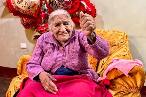 Doña Prudencia Illaconza, quien en septiembre cumplirá 110 años, vive en el distrito de Mi Perú, en el Callao, tiene 9 hijos, 29 nietos y 24 bisnietos. Recientemente cobró su pensión, con el aumento de S/ 100, que ahora es de S/ 350, informó Pensión 65.