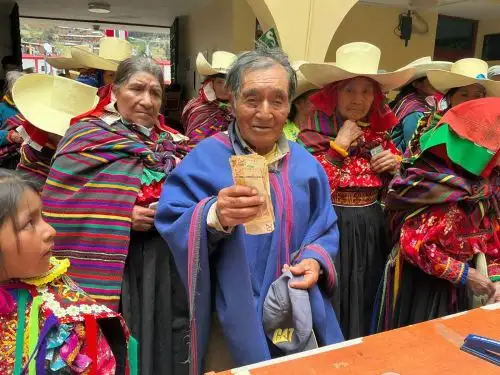 adultos mayores se reunieron para retirar el soporte económico, que este 2025 se incrementó en 100 soles.