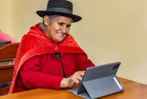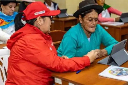En Julcamarca, ubicado a 3 mil 418 metros sobre el nivel del mar, destaca la participación de Perpetua Rodríguez (78), quien se familiariza con el uso de una tablet como parte de esta experiencia formativa, impulsada por su gobierno local en coordinación con Pensión 65, en el marco de la promoción de una vejez digna.