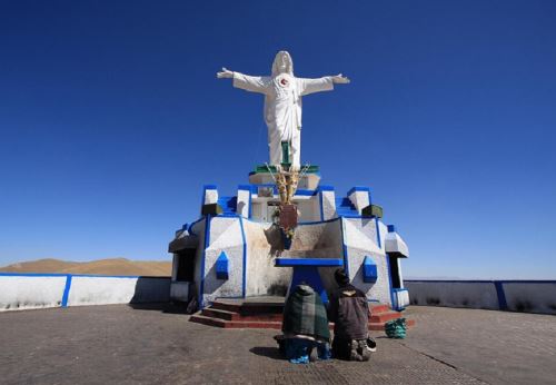 Al pie de la gigantesca efigie se encuentra un mirador desde donde se puede contemplar gran parte de la ciudad de Juliaca y los elementos naturales y culturales de la meseta andina que se eleva sobre los 3,810 metros sobre el nivel del mar.