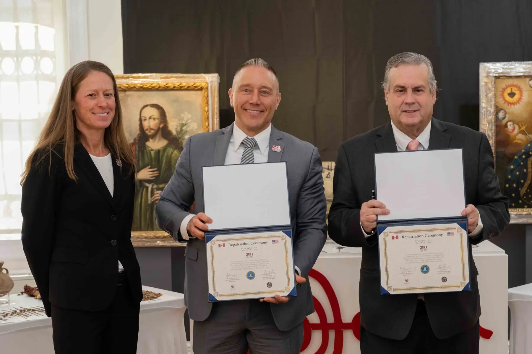 Producto de las coordinaciones entre la Embajada del Perú en Estados Unidos y funcionarios del Programa de Delitos Artísticos del Buró Federal de Investigaciones (FBI) se logró recuperar 48 piezas del acervo cultural peruano que se encontraban en Santa Fe (Nuevo México) y Las Vegas (Nevada).