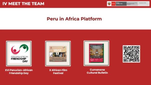 As part of the event, the cultural platform "Peru in Africa" was presented, which brings together the main cultural diplomacy actions with the African continent, including the Peruvian-African Friendship Day, the African Film Festival, and the Cumanana Cultural Bulletin.