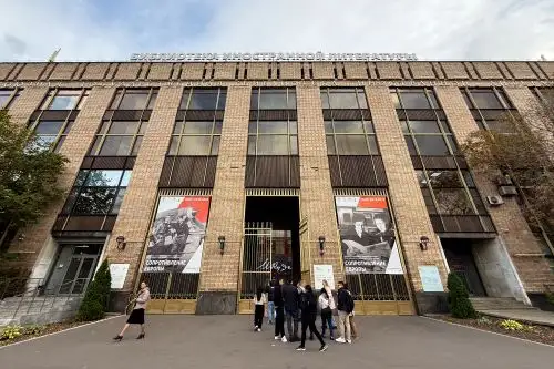 Una de las cosas más llamativas de la Biblioteca de Literatura Extranjera ubicada en Moscú es su patio de ingreso, desde el cual se pueden apreciar muchos bustos y monumentos de personajes trascendentales en la historia y en diversos campos del saber a nivel mundial.