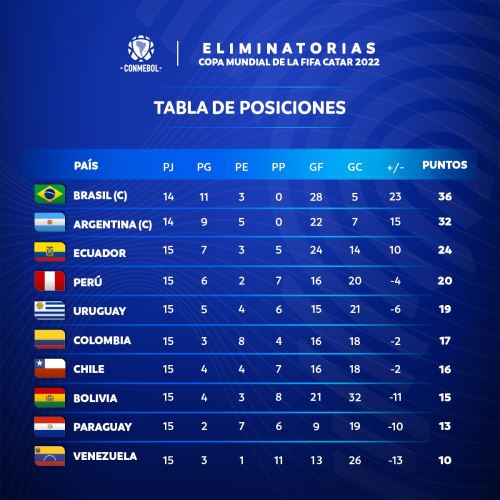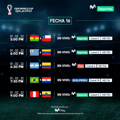 El partido es válido por la jornada 16, una fecha en que seis selecciones buscarán acercar a los 2 cupos y medio que le quedan a Sudamérica para el Mundial Catar 2022, que se juega desde el 21 de noviembre al 18 de diciembre del presente año.