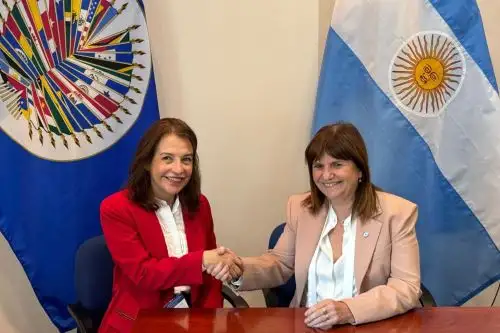 The Peruvian Ministry of Foreign Affairs representative, Ambassador Liliam Ballon, held a meeting with Argentine Minister of Security Patricia Bullrich, who holds the vice-chairmanship of the OAS's Fourth