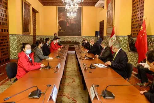 Peruvian Ministers Mario Lopez (Foreign Affairs) and Pilar Mazzetti (Health) received a delegation from the Chinese laboratory Sinopharm to know the progress of its COVID-19 vaccine clinical trials in Peru.