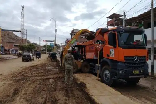 El sector Defensa sigue desplegando ininterrumpidamente sus capacidades para enfrentar las intensas lluvias, como en el distrito de Máncora, provincia de Talara, en la región de Piura, donde el Ejército del Perú desplazó personal y maquinaria pesada para realizar trabajos de primera respuesta en los sectores más afectados por las precipitaciones.