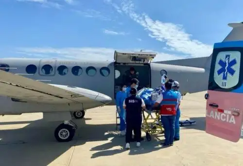 Por disposición del ministro de Salud, César Vásquez, el paciente fue trasladado hasta la capital en un avión de la FAP, acondicionado con equipo biomédico del Servicio de Atención Móvil de Urgencias (SAMU) de última generación y con tres profesionales de la salud, convirtiéndose en una ambulancia aérea.