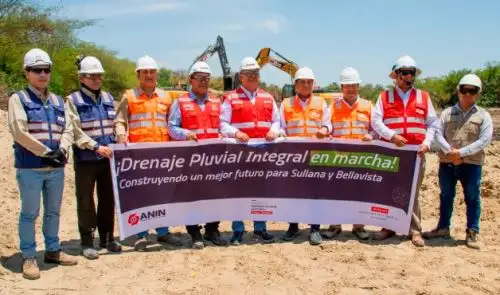 Representantes de la Autoridad Nacional de Infraestructura (ANIN), el alcalde distrital de Bellavista, Julio Oliva; y funcionarios de la Municipalidad Provincial de Sullana supervisaron los avances del Proyecto Drenaje Pluvial Integral de Sullana y Bellavista, en la zona de intervención del Sector 1: Dren Boquerón de Núñez.
