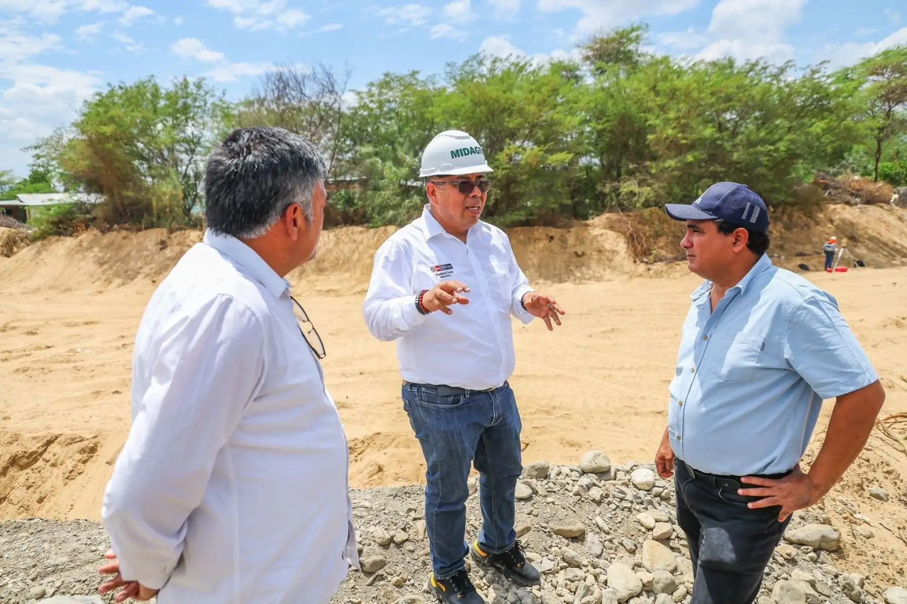 “Estamos aquí supervisando la ejecución de los trabajos que nos permiten proteger las zonas agrícolas y también a la población que se encuentra en las zonas aledañas, en primera instancia”, destacó el ministro Cuno Salcedo.