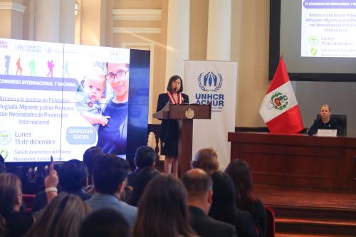 La jueza suprema expresó su agradecimiento a la Agencia de la ONU para los Refugiados (ACNUR Perú), la Oficina del Alto Comisionado de las Naciones Unidas para los Derechos Humanos y el Colegio de Abogados de Lima Sur, entidades que contribuyeron a la realización de este evento académico