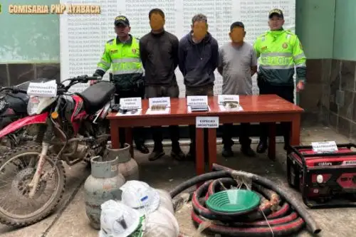 En Piura, fueron capturados tres presuntos miembros de la banda “Los Venecos Mineros” por minería ilegal. Se halló un arma de fuego, marihuana, mercurio y diversos equipos empleados en esta actividad ilícita. Además, se detuvo a un menor conocido como “Trakas”, presunto integrante de “Los Primos”, en posesión de un cartucho de dinamita, una nota extorsiva y un celular. El adolescente tiene antecedentes por tráfico de drogas, porte de armas y explosivos.