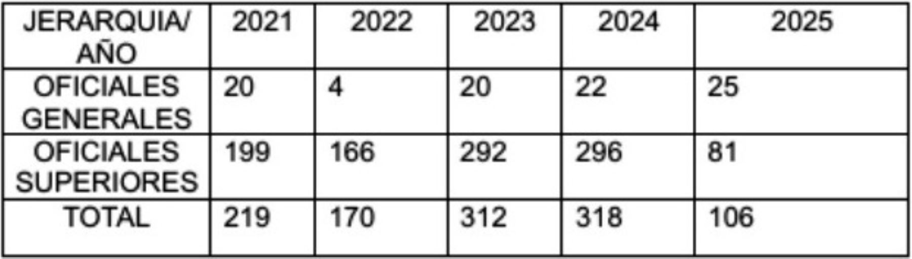 La PNP indicó que los datos históricos de los pases a retiro reflejan la aplicación continua y transparente de este mecanismo institucional, tal como se muestra a continuación.