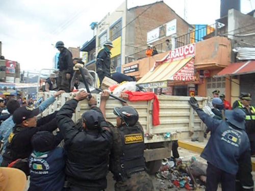 Tuvieron que intervenir miembros del Serenazgo de Chupaca para apoyar a los trabajadores de limpieza pública, después ellos fueron acusados de agredir a los pobladores que tenían la intención de dialogar con el alcalde de Chupaca, Luis Bastidas Vásquez.