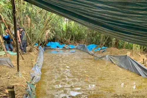 Las acciones de inteligencia llevaron a los agentes hasta el sector de La Estrella, en el corazón de la Selva, donde se encontró una poza de cinco metros por 15 metros y cerca de un metro de profundidad.