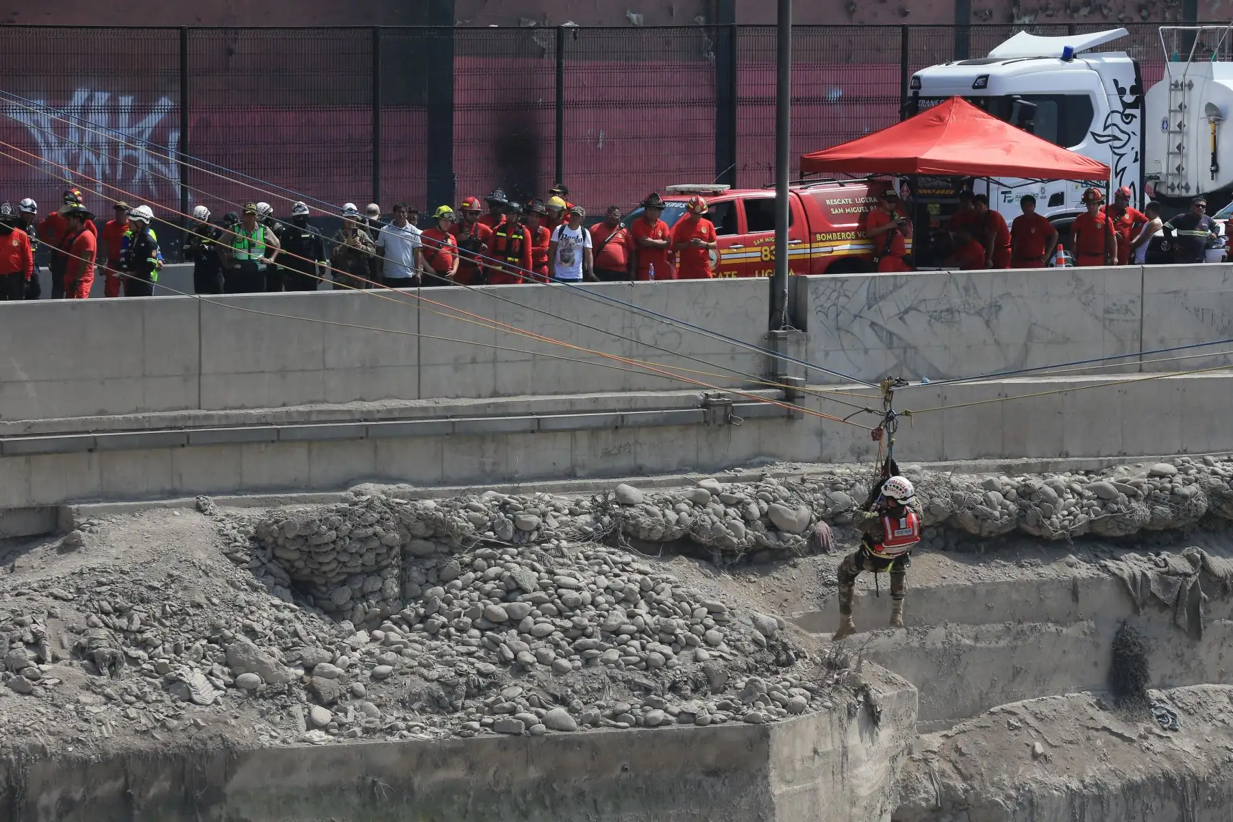 Jorge Canal, jefe de la primera brigada de la Comandancia Lima Centro de los Bomberos, explicó que la Policía -apoyada con sogas y arneses- se encarga de descender al río en distintos puntos, mientras que los bomberos realizan labores de avistamiento, para dar cuenta a los agentes del orden en caso observen un cuerpo en medio del agua.