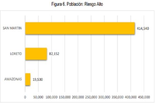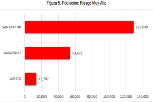 Ante el pronóstico de lluvias moderadas a fuertes en la Selva norte, se encuentran en riesgo muy alto por movimientos en masa, 19 distritos de las regiones de Amazonas, Loreto y San Martín, con 196,425 habitantes expuestos, además de 48,446 viviendas; 190 establecimientos de salud y 1,284 instituciones educativas.