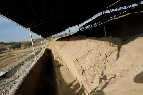 Si bien el área es atribuida a la ocupación incaica, también habría presentado asentamiento Chimú. En este complejo es resaltante la presencia de una estructura piramidal trunca llamada huaca del sol, que tiene una altura de aproximadamente 15 metros y una base que alcanza las medidas de 100 metros por 250. Esta presenta tres terrazas superpuestas y delimitadas por muros de contención elaborados con los ladrillos de adobe, para evitar precipitaciones del terreno.