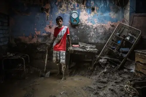 El primer puesto en la categoría profesional fue otorgado a Paul Vallejos Coral, de la ciudad de Lima, que tituló uno de sus trabajos “De pie ante la adversidad”, en el cual se muestra la imagen de un joven en su vivienda luego de que varios huaicos, ocasionados por las fuertes lluvias, cayeron sobre Chosica y Santa Eulaliay provocando las muertes de al menos cuatro personas y la desaparición de otras seis.
