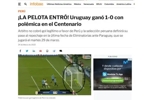 Infobae fue contundente al asegurar que la pelota ingresó en su totalidad y que Uruguay ganó con polémica: “¡La pelota entró! Uruguay ganó 1-0 con polémica en el Centenario”.