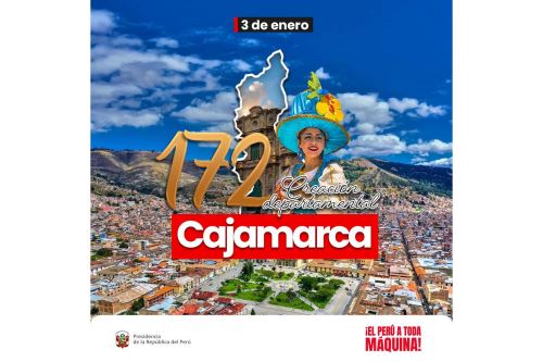 La Presidencia de la República saludó al departamento de Cajamarca al conmemorarse hoy el 172 aniversario de su creación política, la cual ocurrió en el año 1854.