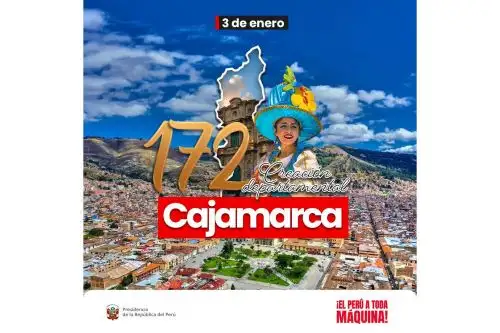 "La Presidencia de la República saluda al departamento de Cajamarca al conmemorarse el 172 aniversario de su creación departamental, destacando su legado histórico, cultural y el valioso aporte de su población al desarrollo del país", señaló en su cuenta de la red social X.