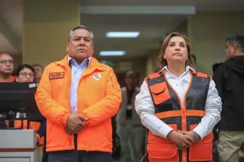 La jefa de Estado, quien estuvo acompañada del titular de la Presidencia del Consejo de Ministros, Gustavo Adrianzén; recibió el reporte del jefe del INDECI, Juan Carlos Urcariegui, sobre todas la incidencia en el desarrollo del Tercer Simulacro Nacional Multipeligro 2024.