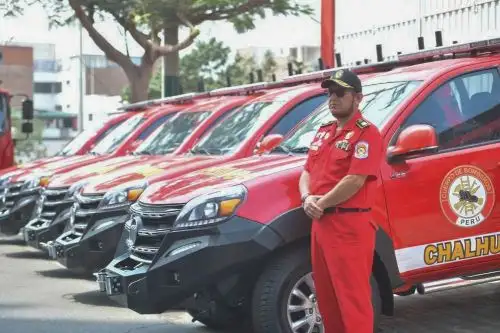 La presidenta de la república, participa en la ceremonia de presentación de equipos adquiridos para el Cuerpo General de Bomberos Voluntarios del Perú.