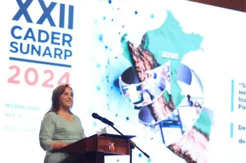 Al finalizar su discurso, la Mandataria saludó a los trabajadores y funcionarios de la Sunarp por su aniversario y agradeció por ser el puente entre el Estado y el ciudadano.