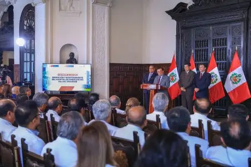 Asimismo, acompañan al mandatario el ministro de Economía y Finanzas, Rodolfo Acuña, entre otras autoridades.