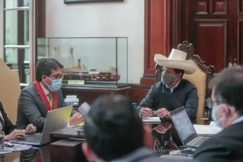 El presidente Pedro Castillo sostiene una reunión con integrantes de la Fiscalía de la Nación, según informó la Secretaria de Prensa de la Presidencia de la República.
