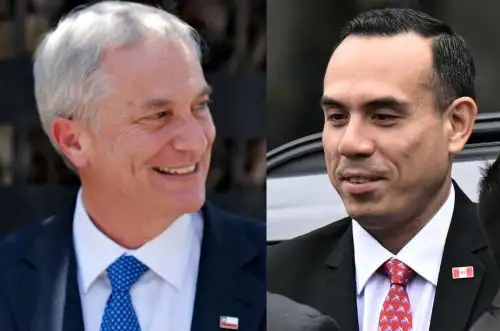 El presidente de la república, José Jerí Oré, recibe al mandatario electo de Chile, José Antonio Kast, en la sede de Palacio de Gobierno.