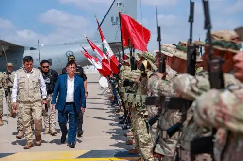 El jefe de Estado aterrizó esta mañana en el Grupo Aéreo n.° 6 de Chiclayo junto al presidente del Consejo de Ministros, Luis Arroyo, y el ministro de Defensa, Carlos Díaz.